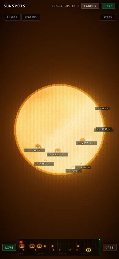 I wanted something you could glance at and immediately know what the Sun is doing, so I built Sunspots.